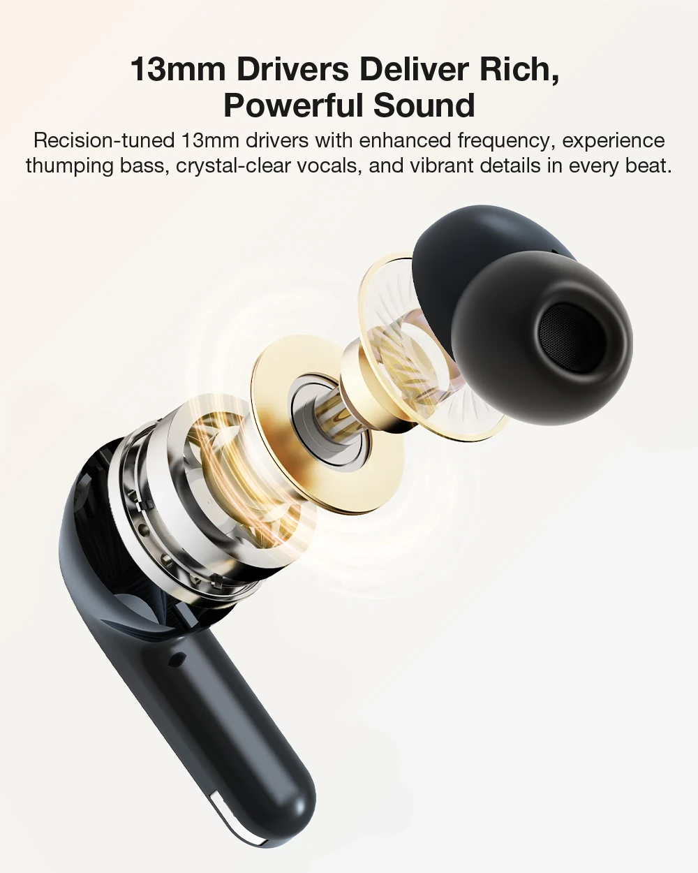 Per la musica: gli auricolari con altoparlanti da 13 mm offrono bassi potenti e profondi e voci nitide, offrendo un'esperienza di ascolto piacevole con tutti i generi musicali.