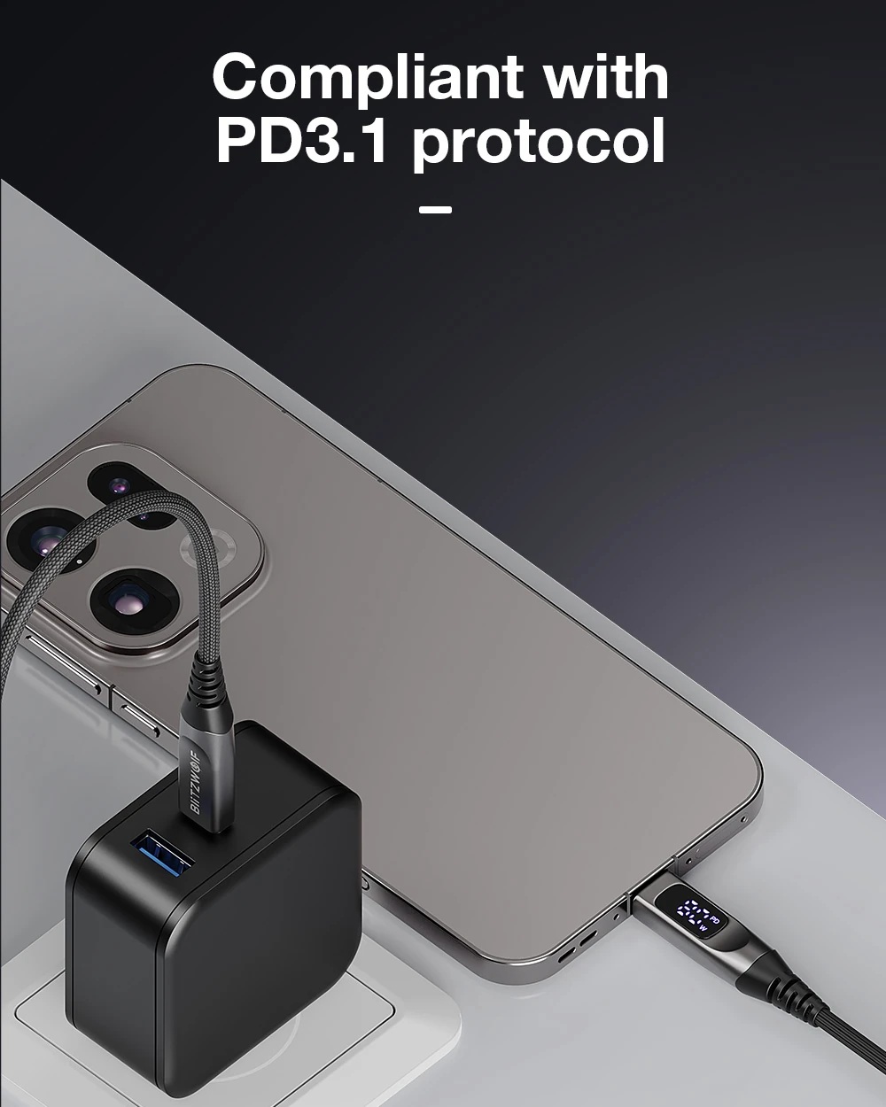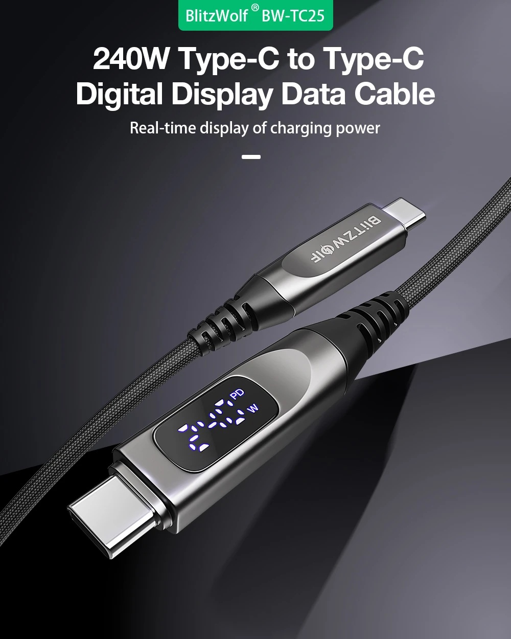 Porta la ricarica dei tuoi dispositivi a un livello superiore con il cavo BlitzWolf® BW-TC25! Non è un semplice cavo di ricarica; grazie al display digitale integrato e alla straordinaria potenza di 240W, offre precisione ed energia ultra-rapida alla tua routine quotidiana. Che si tratti dell'ultima serie iPhone 17, di laptop ad alte prestazioni o di dispositivi premium Samsung e Huawei, questo cavo è pronto a ogni sfida.