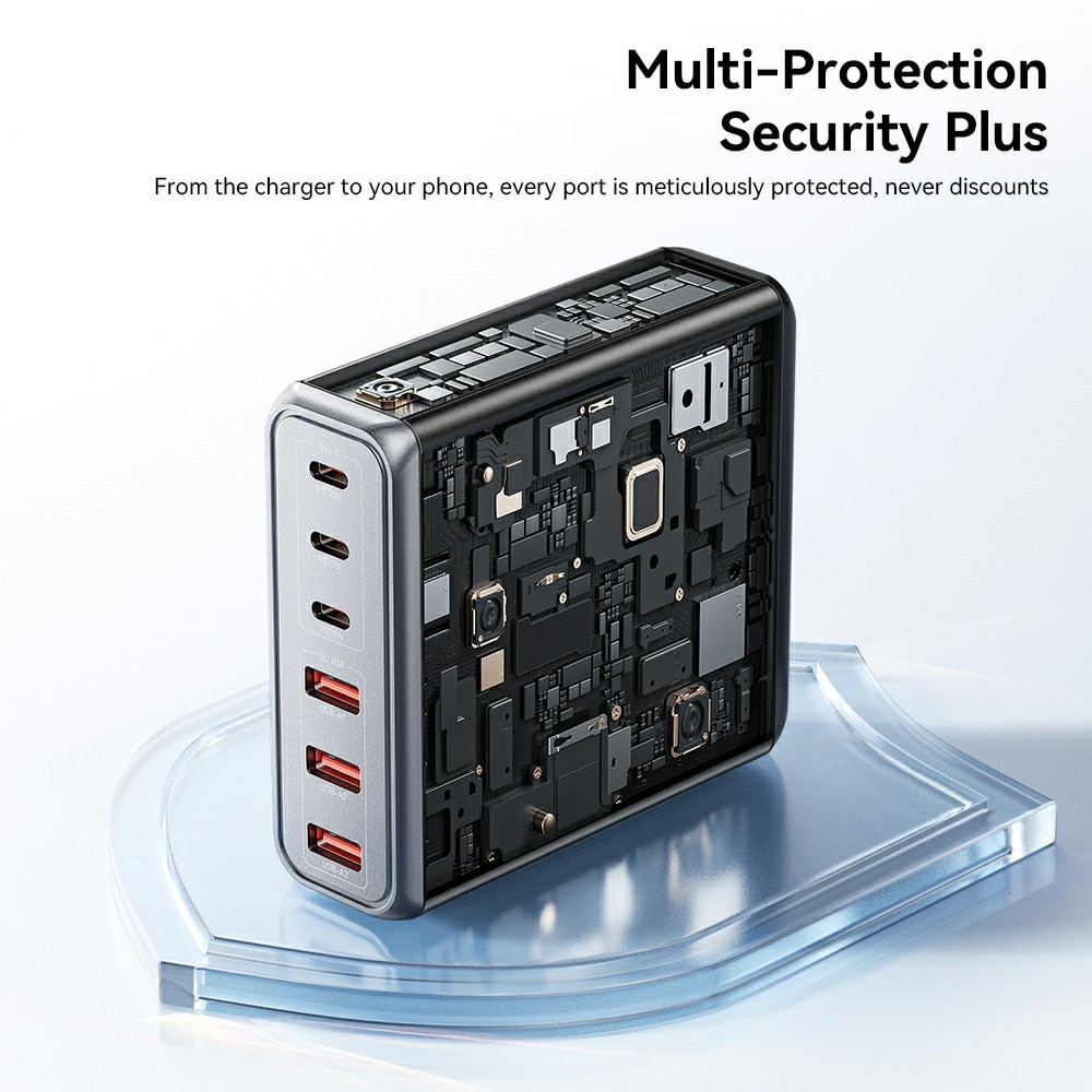 Un concentrato di potenza 6 in 1: 3 porte USB-C e 3 porte USB-A a tua disposizione. Puoi caricare contemporaneamente laptop, telefono, tablet, smartwatch e persino cuffie.