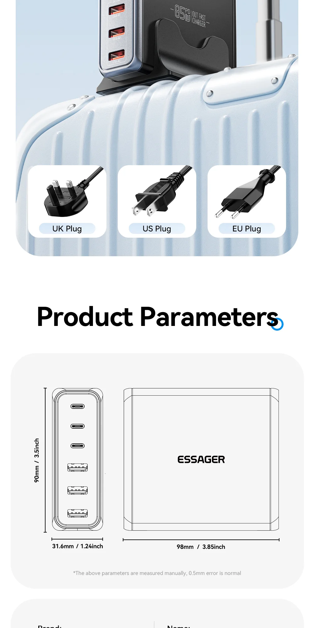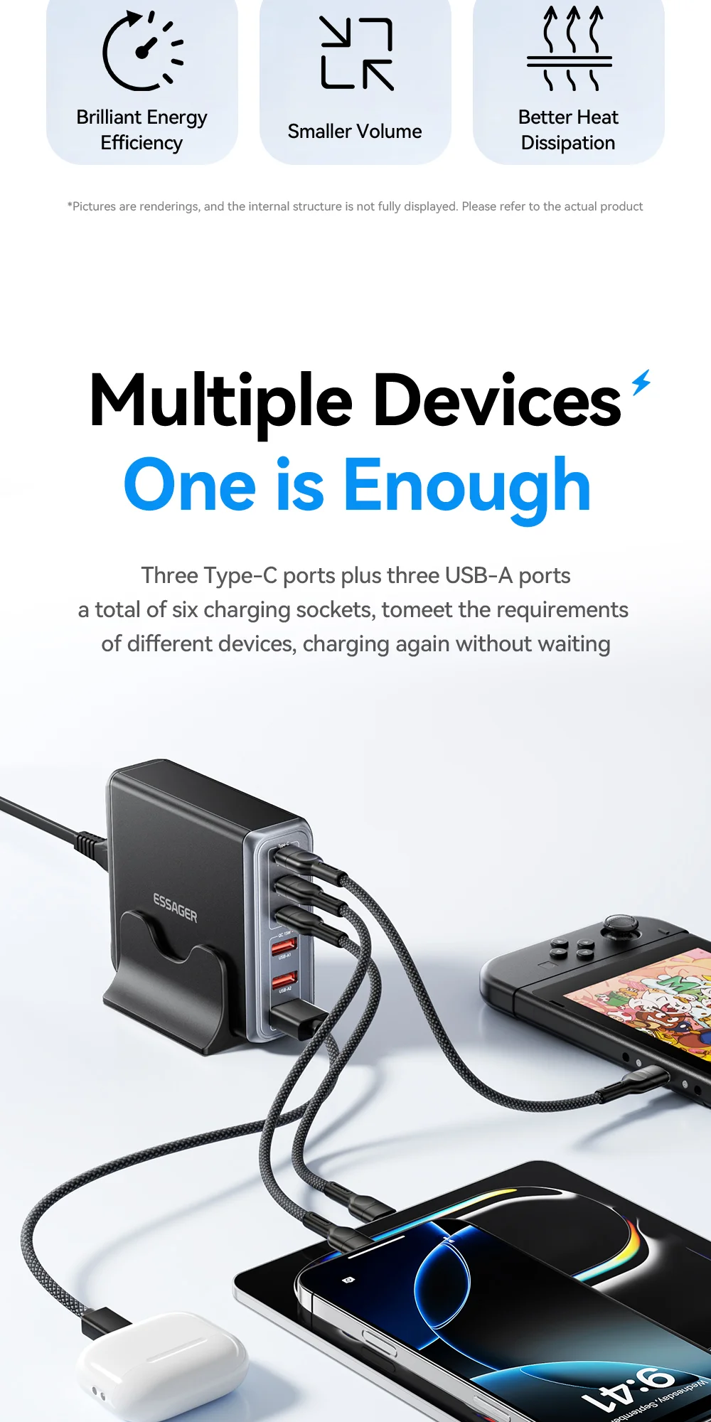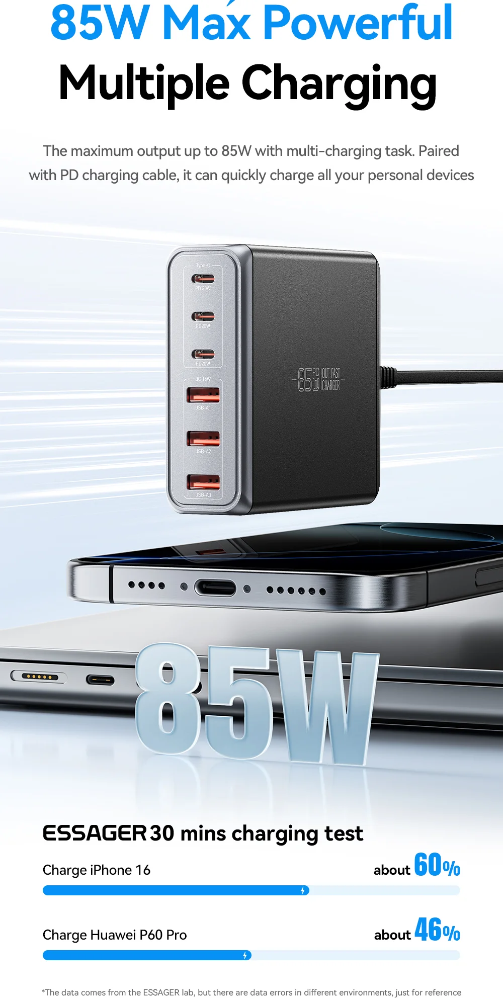 Metti in ordine le tue abitudini di ricarica oggi stesso! Con il caricabatterie ESSAGER da 85 W GaN, non solo risparmierai tempo, ma anche spazio.