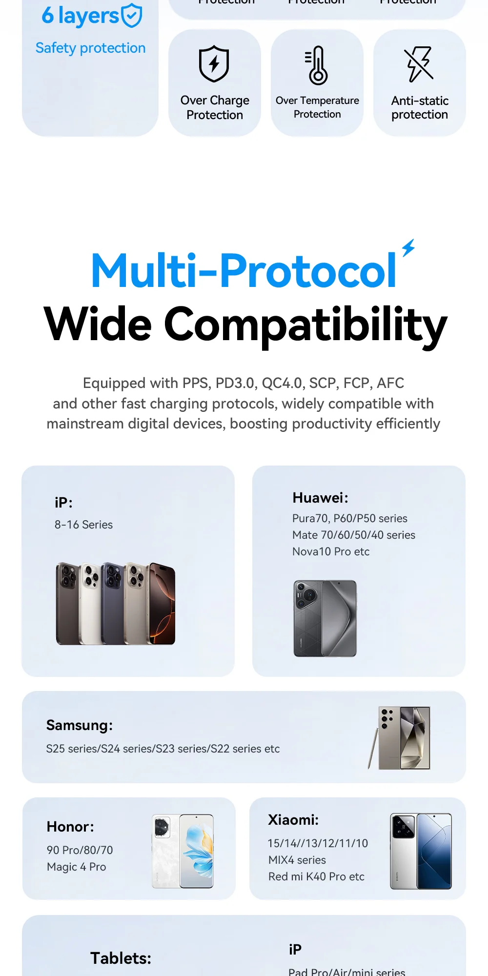 Protezione universale: dotato di protezione da sovratensione, sovracorrente e cortocircuito, per tenere al sicuro i tuoi dispositivi più preziosi.