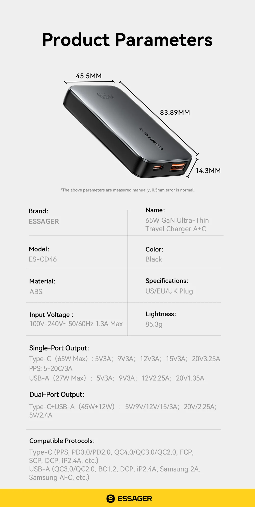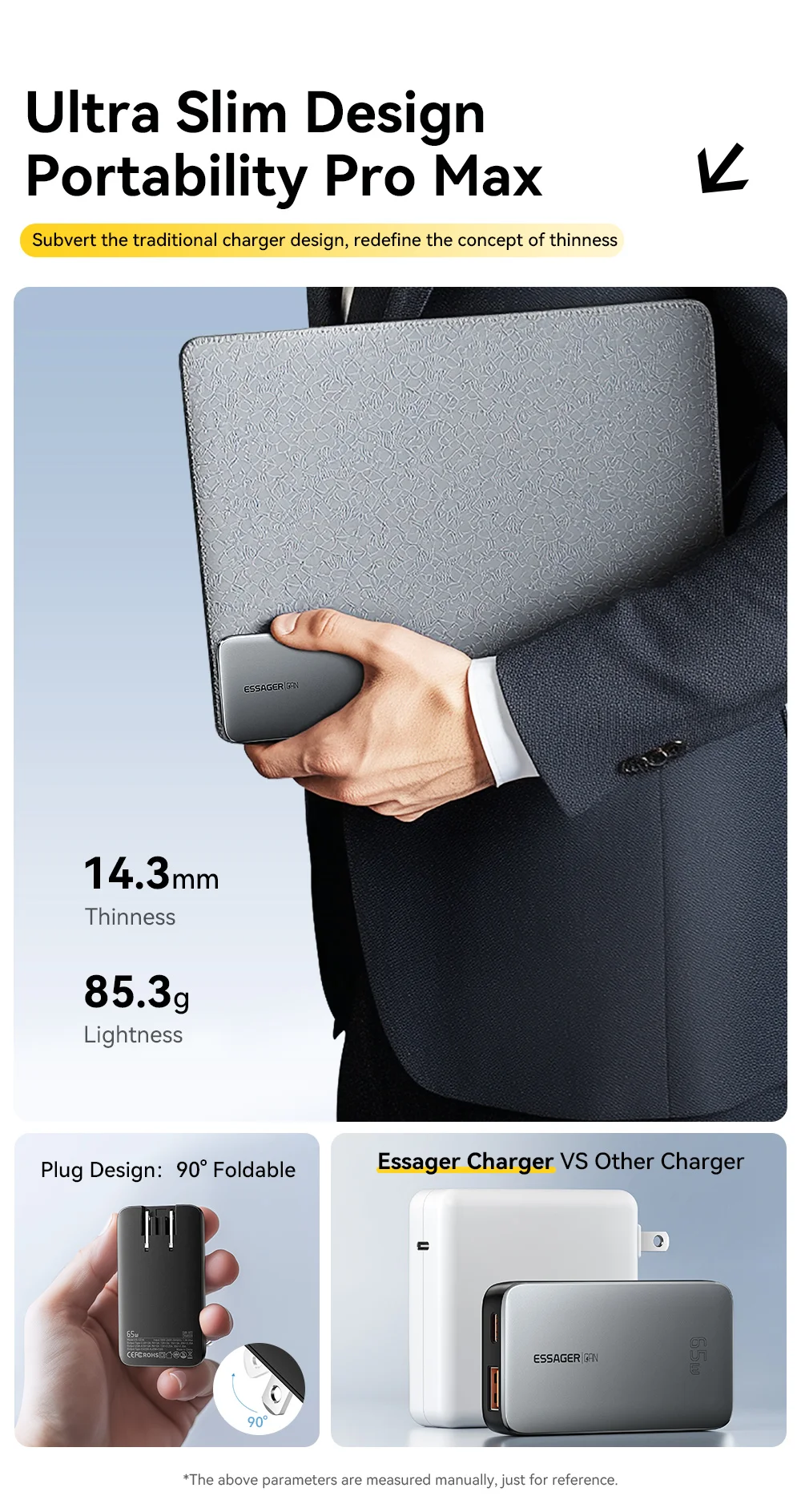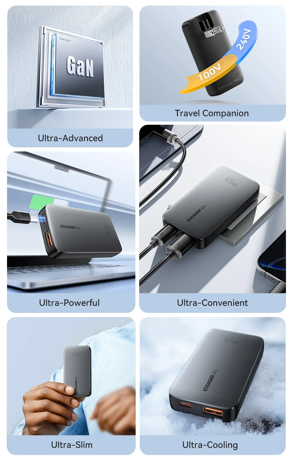 Non portare peso inutile. Passa al caricabatterie ESSAGER 65W Ultra Slim GaN e goditi la libertà offerta dalla tecnologia moderna!