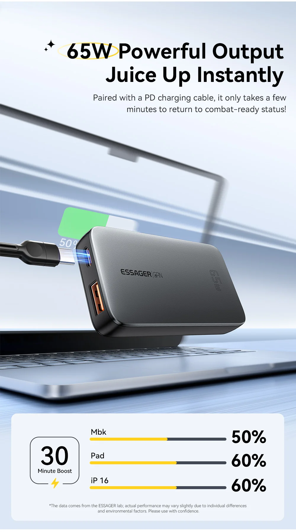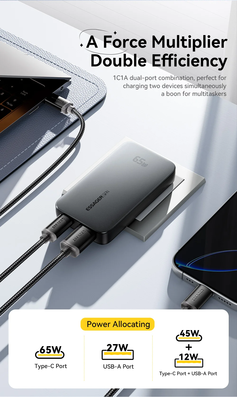 ESSAGER 65W Ultra Slim GaN – Una centrale elettrica tascabile. Riscrivi tutto ciò che pensavi sui pesanti caricabatterie per laptop e sui cavi che si aggrovigliano nella borsa!