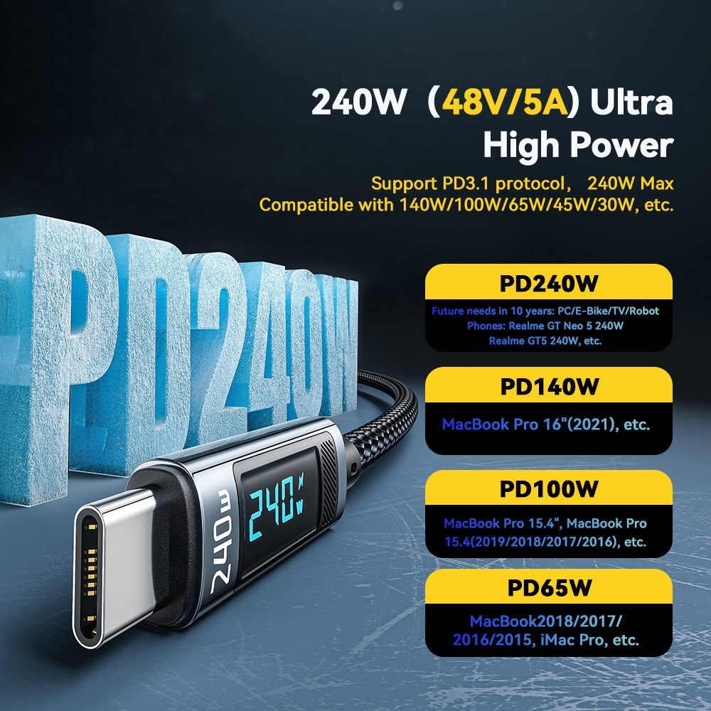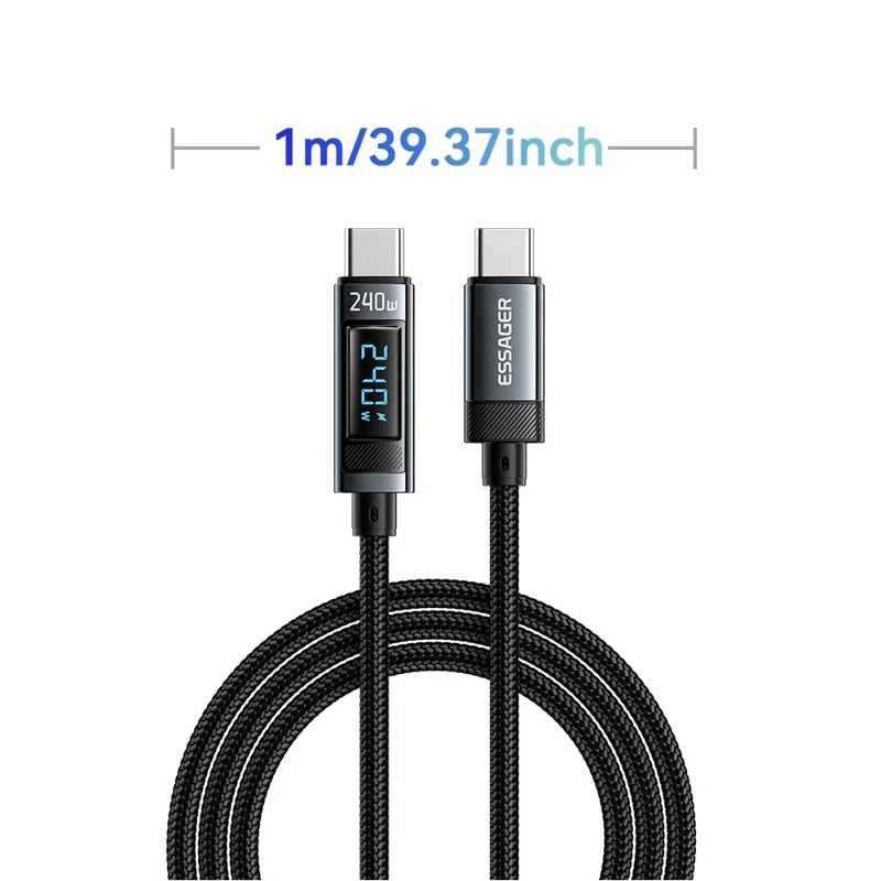 ESSAGER ES-X47 - 1 metri, Type-C - Type-C USB cavo. Display digitale, ricarica da 240 W, rivestimento in tessuto perlato