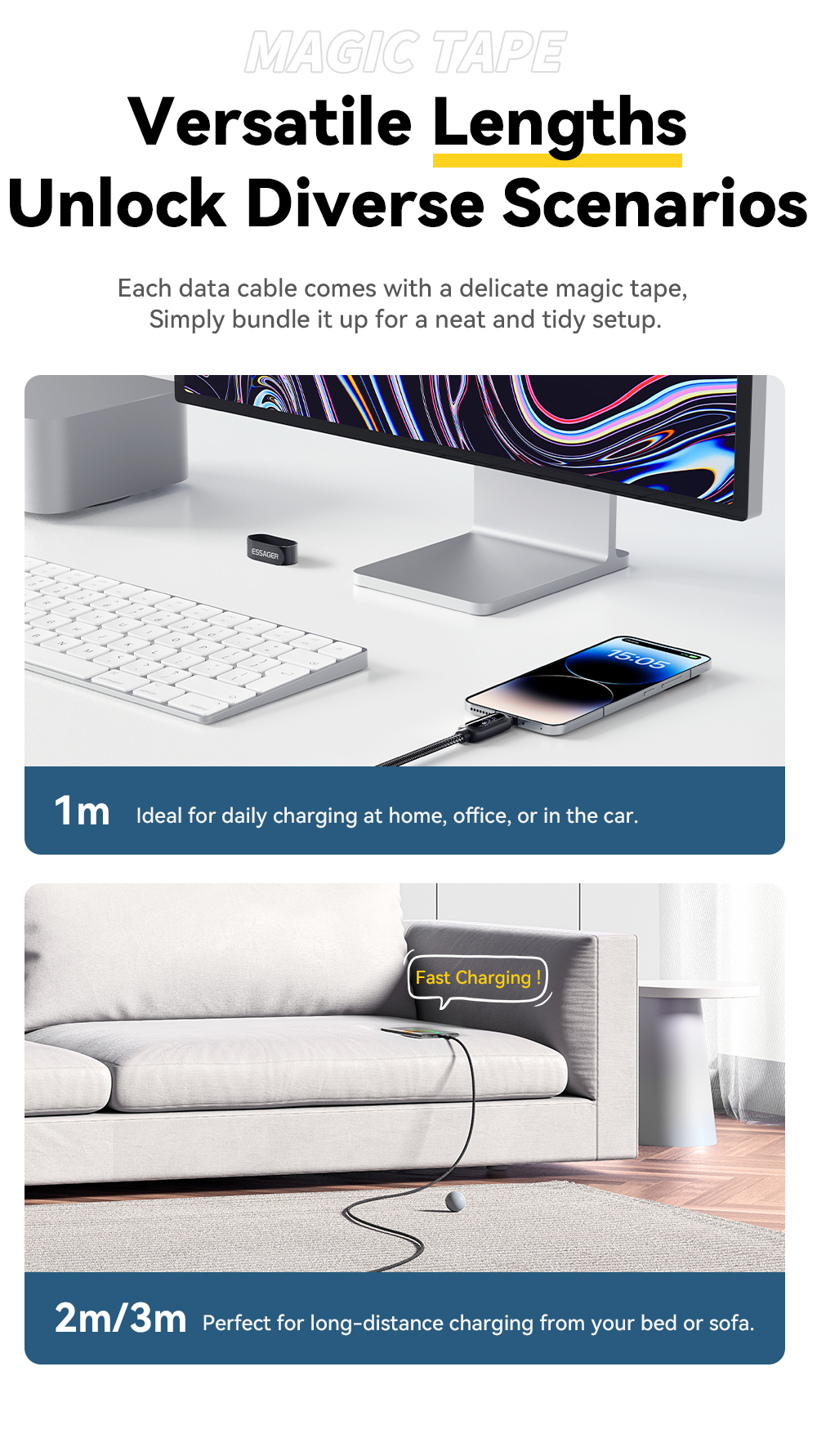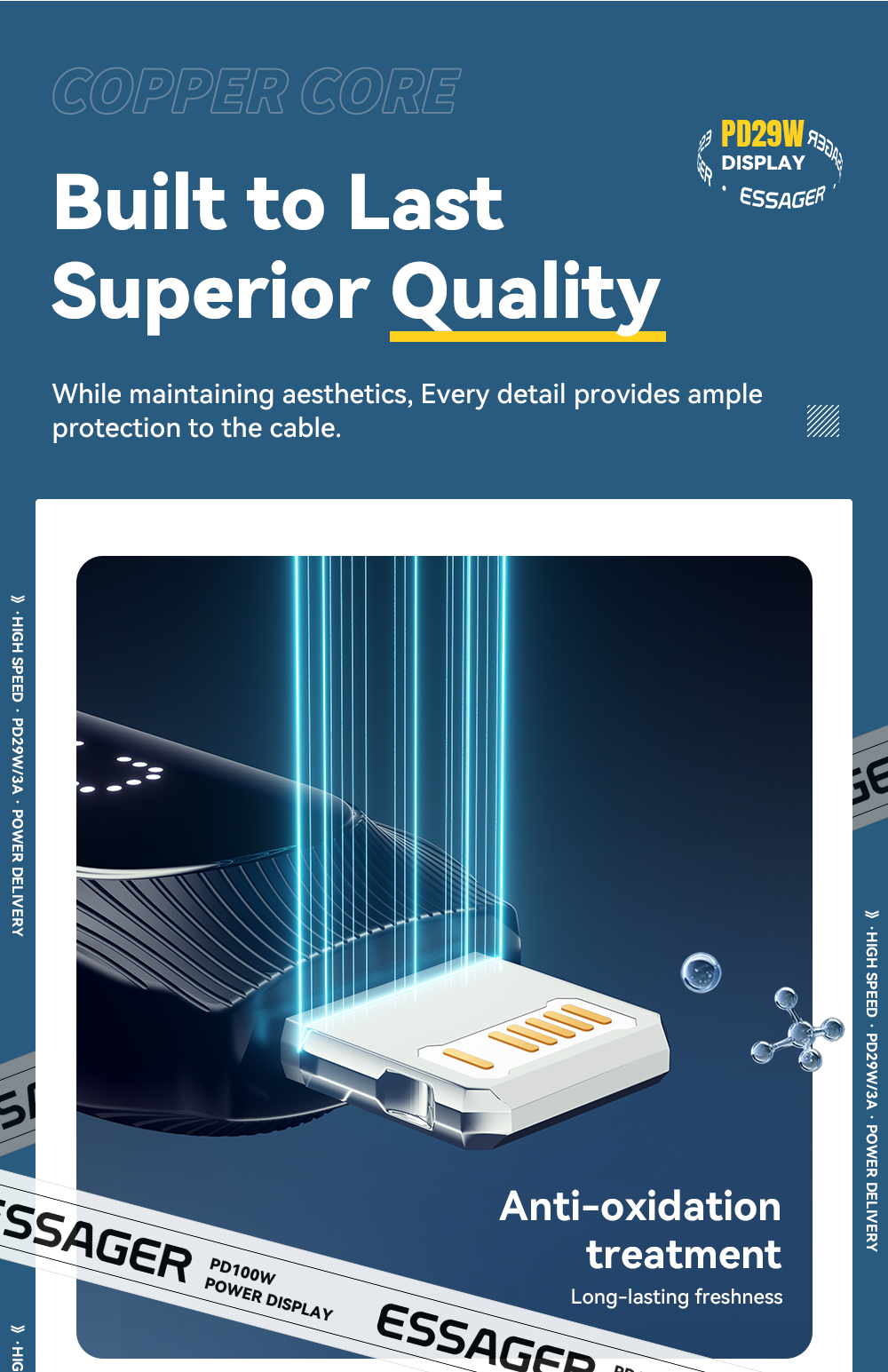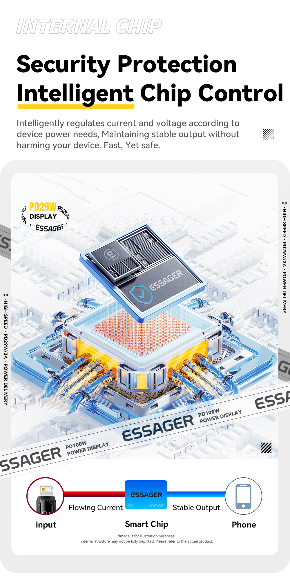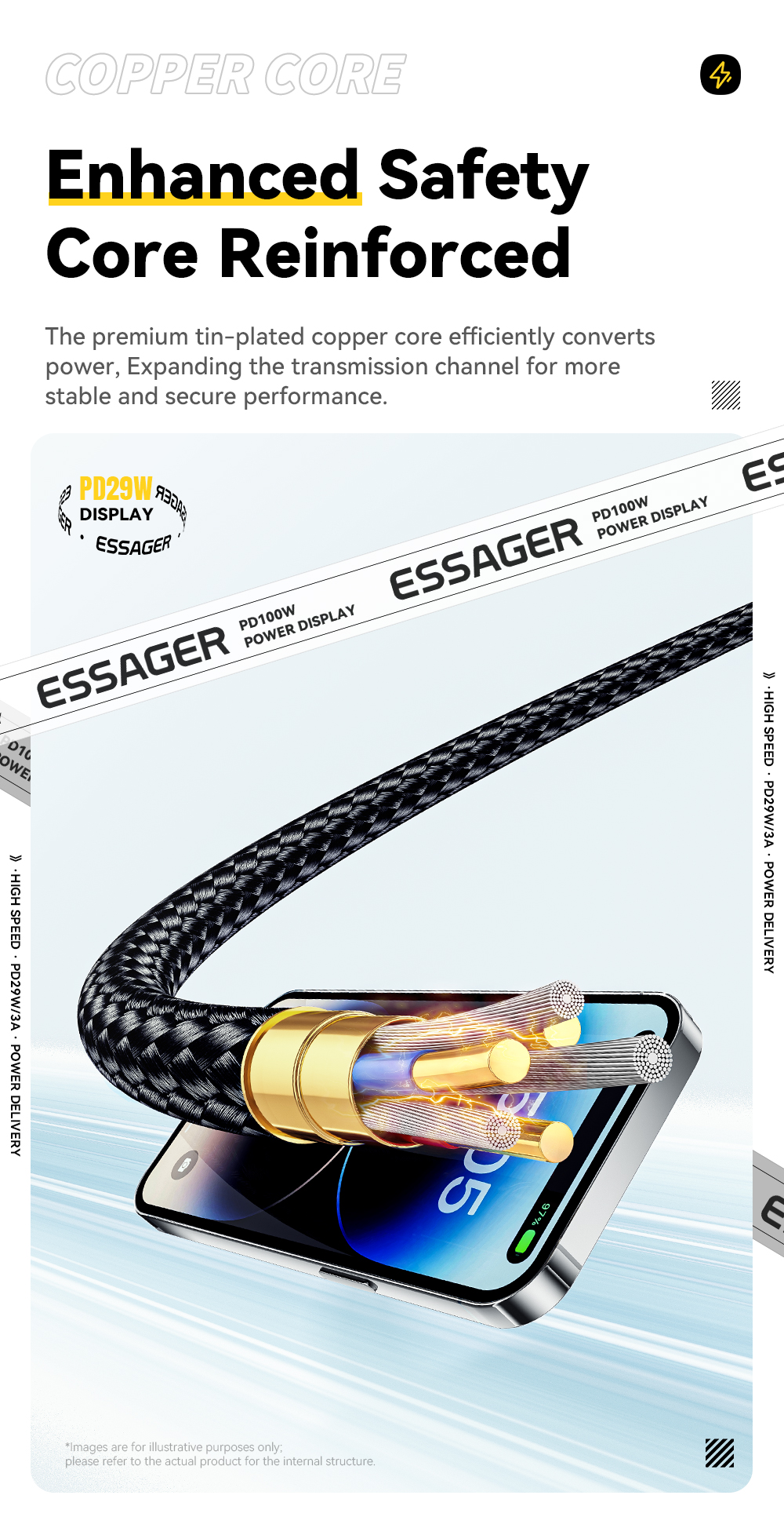 ESSAGER ES-X57 - 1 metro, Type-C - Lightning, cavo USB. Display digitale, ricarica da 29 W, rivestimento in tessuto perlato.